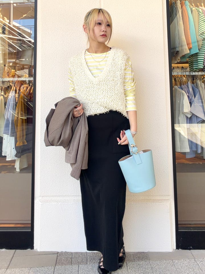 〔MEDIUM〕SHIPS Colors:〈手洗い可能〉リブ ダンボール タイト スカート