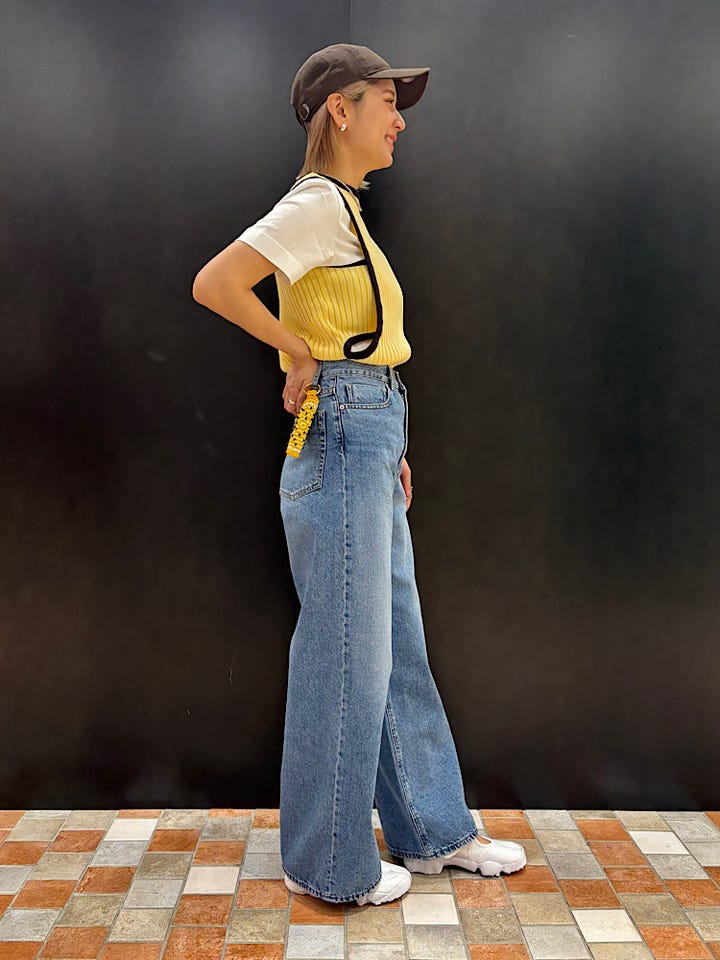 【素材感・着心地】形とても綺麗です。ワイドで硬くないデニム生地なので履き心地も◎