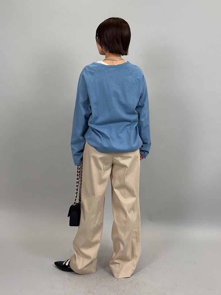程よいゆとり。フラットシューズで地面につく裾丈。