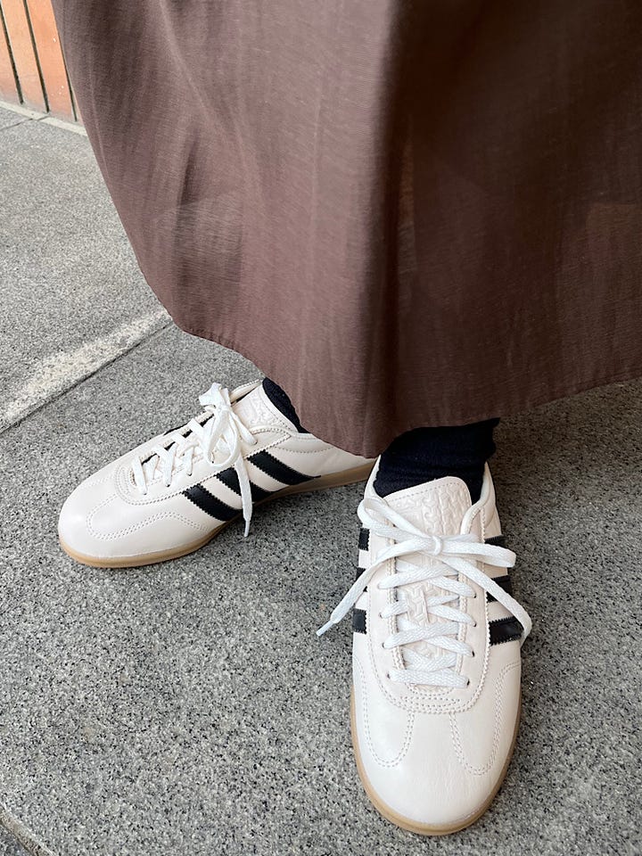 素材感・着心地:ウエストゴムで窮屈感なく着用しやすいです。ロング丈ですがしっかり足幅も取りやすいアイテム。