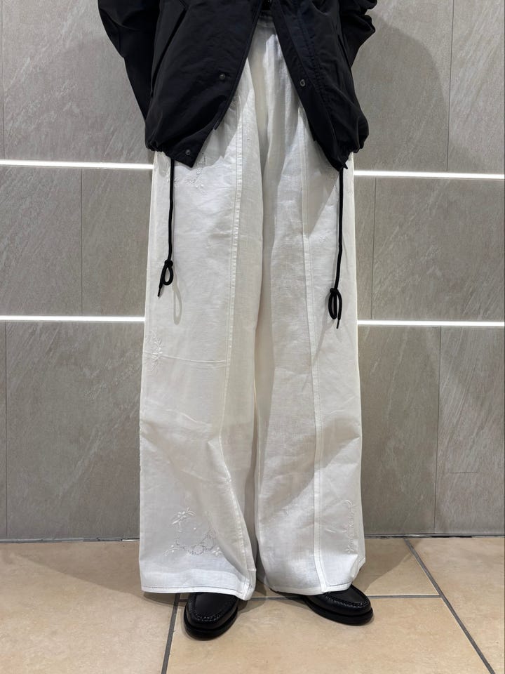 素材感・着心地:軽やかなナイロン素材。全体的にゆとりのあるシルエットです。