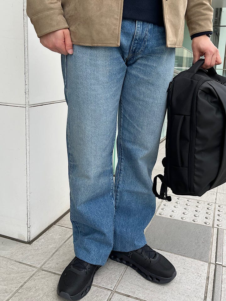 着心地:程よくゆとりがあるので動きやすくオールシーズン履ける生地なので非常に重宝します。