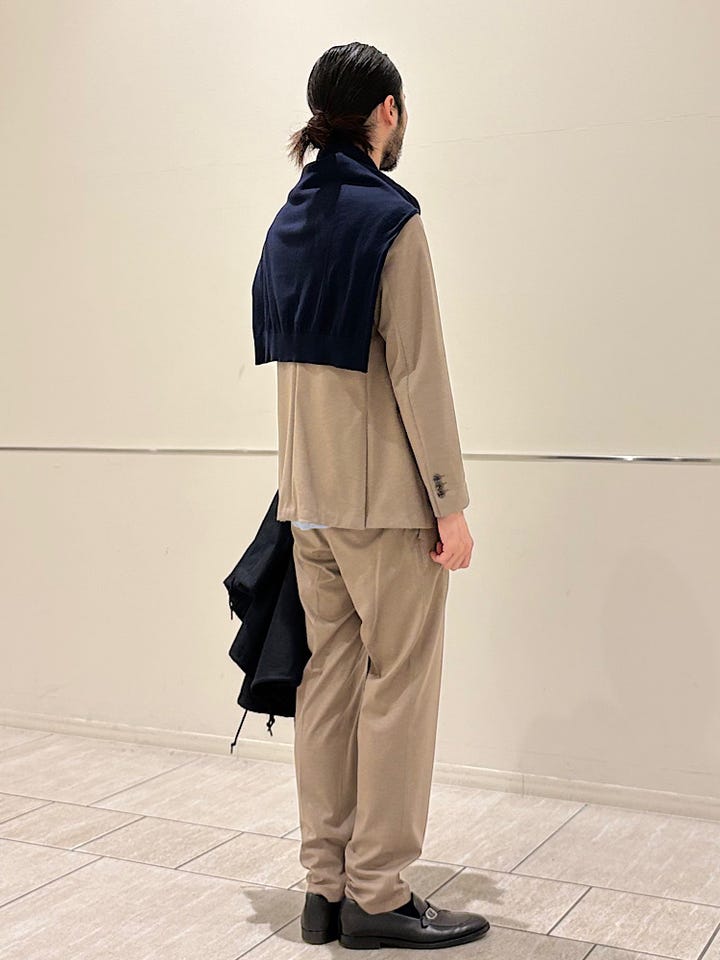 洗濯可能。ストレッチの効いた素材感で楽な着心地。背抜きなので幅広いシーズンで着用できます。