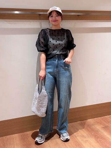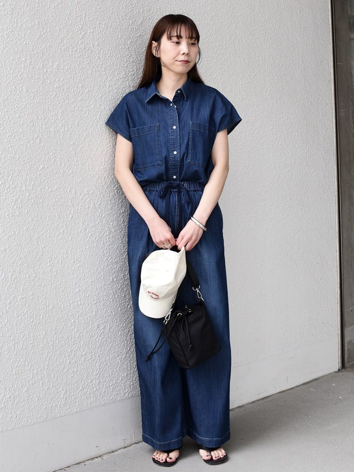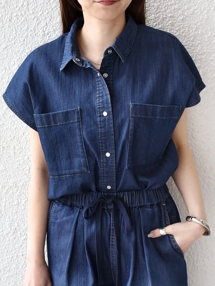 着用アイテム:ファンクション デニム フレンチスリーブ シャツ