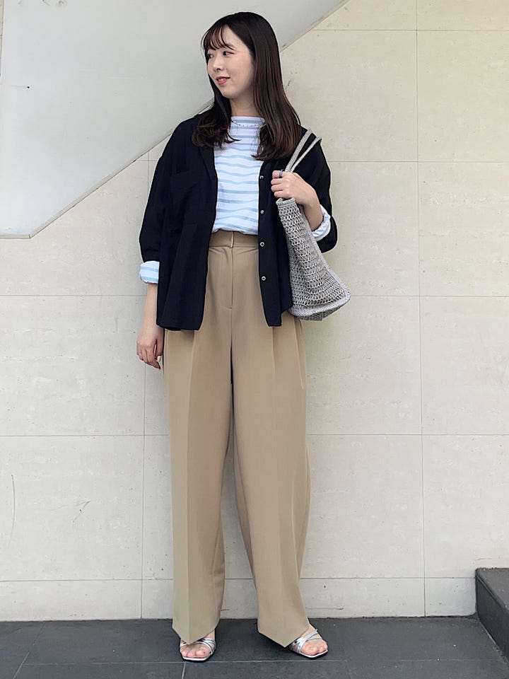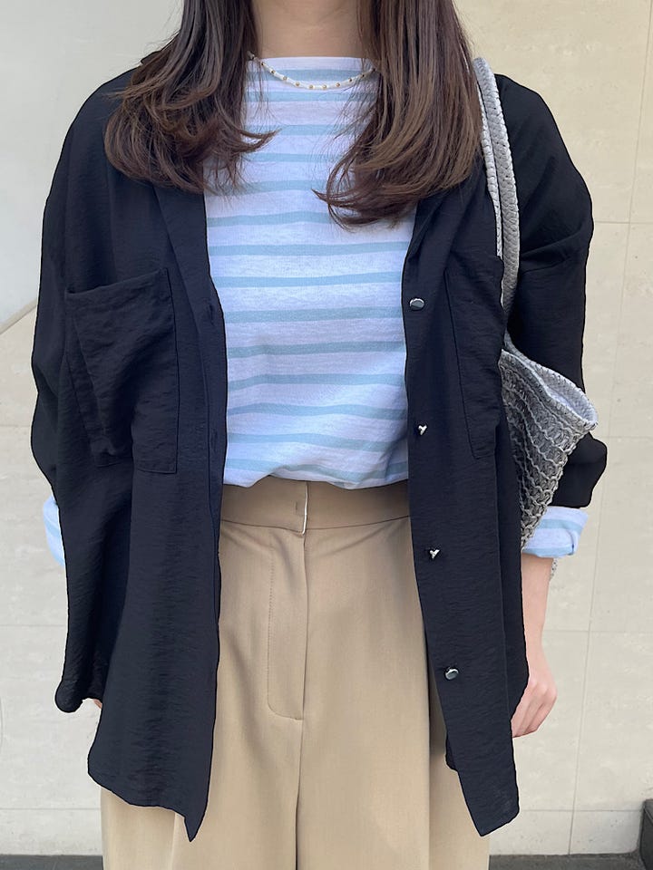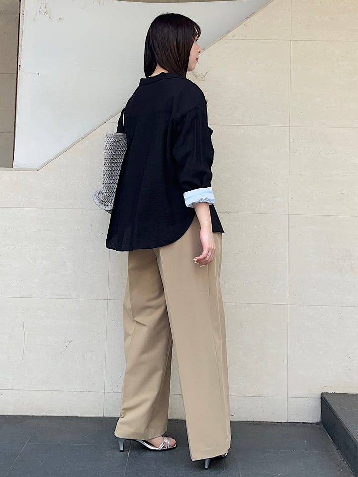 開襟シャツですが、身ごろにゆとりのあるサイズ感なので薄手のジャケットのような使い方もできます。