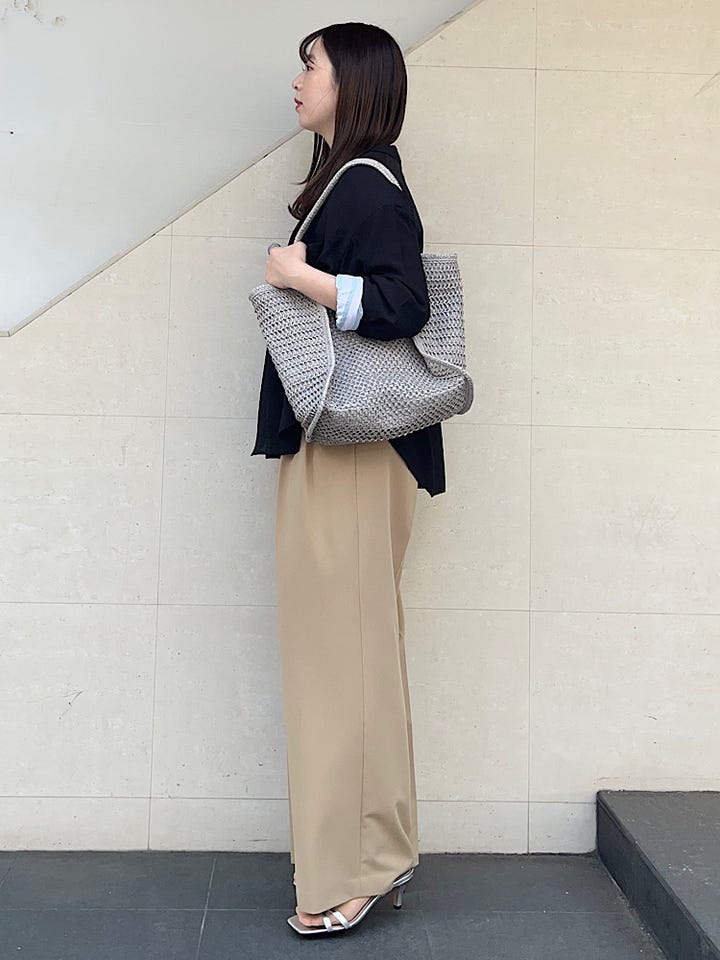 〔ONE SIZE〕SHIPS any: タッセル 透かし編み ペーパー トート バッグ