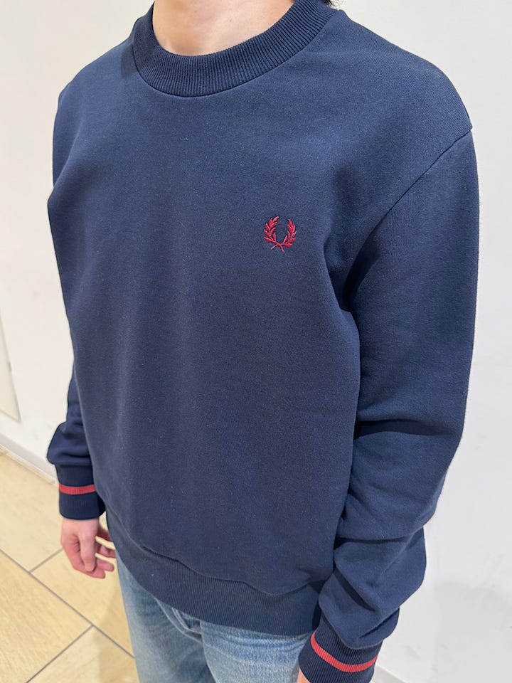 サイズ感はややゆったりとしたシルエットになっており、胸の位置にフレッドペリーの象徴とされているマークが入っております。