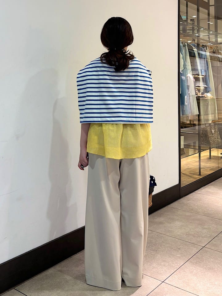 着心地:麻混でドライタッチのため、涼しく着ていただけます。ティアードデザインが、お腹や腰周りを自然とカバーしてくれます。
