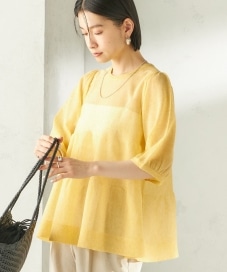 〔ONE SIZE〕〈手洗い可能〉麻混 シアー ティアード ショート スリーブ プルオーバー