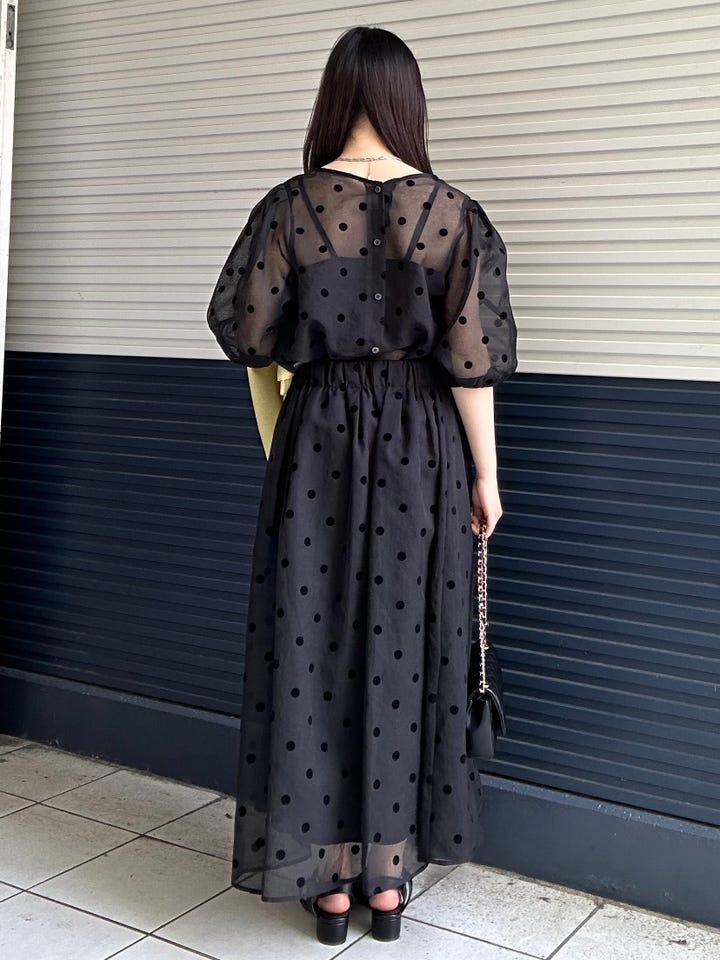 〔ONE SIZE〕SHIPS Colors:〈手洗い可能〉シアー フロッキー ドット 5分袖 ブラウス◇