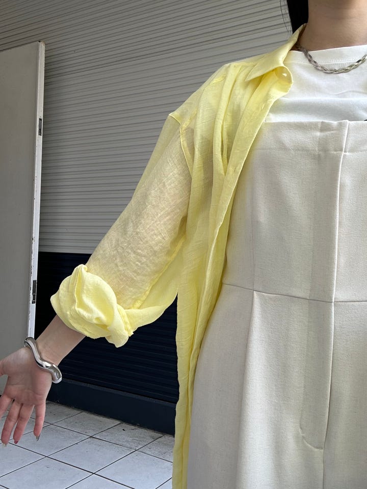 少し透け感がある涼しげなシャツワンピースです。柔らかい肌触りです!
