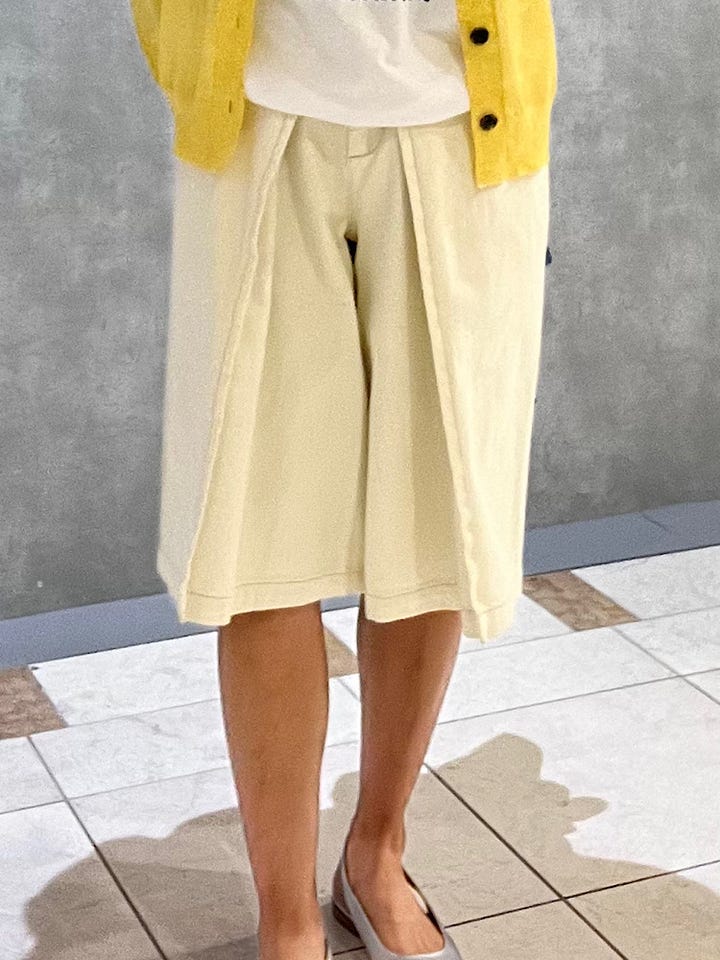 着用感 : デニムほど厚手ではないですが意外としっかりした生地感です。丈感も短くないのでトップスのバランスが取りやすいです。