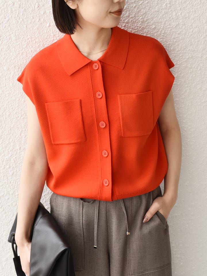 着用アイテム:〈手洗い可能〉ポロ フレンチスリーブ ニット ベスト◆