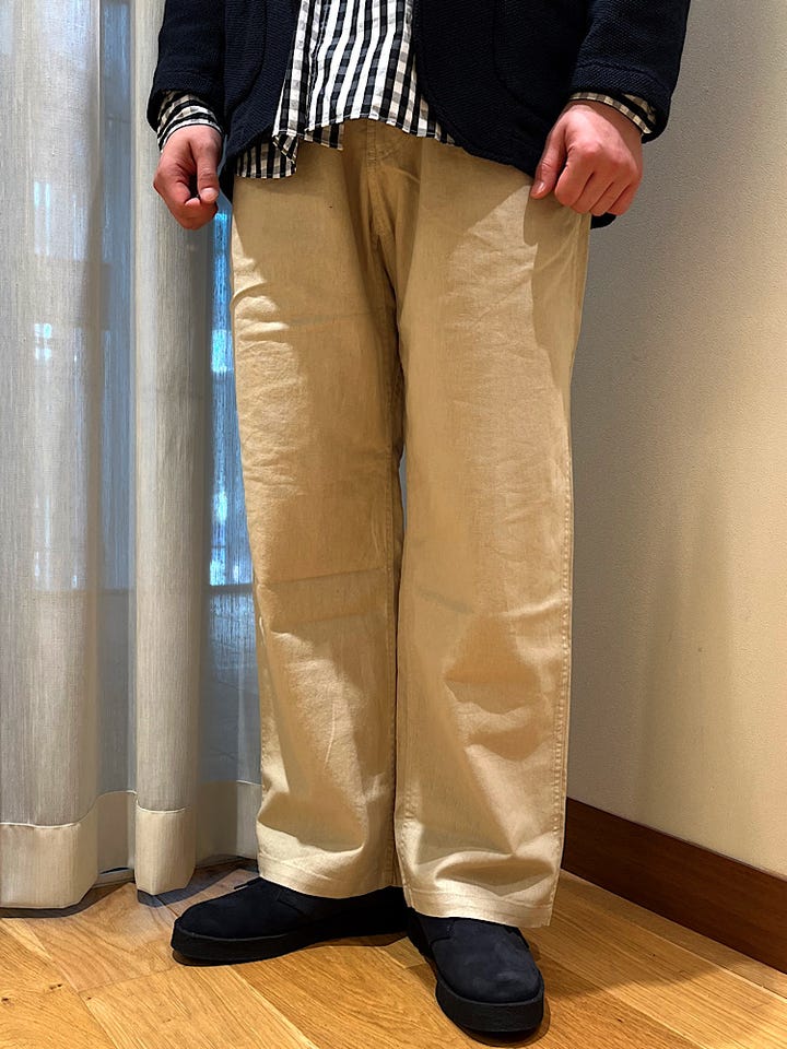 着心地:非常に軽く肌離れもいいので真夏でも楽に着用できるパンツになってます。