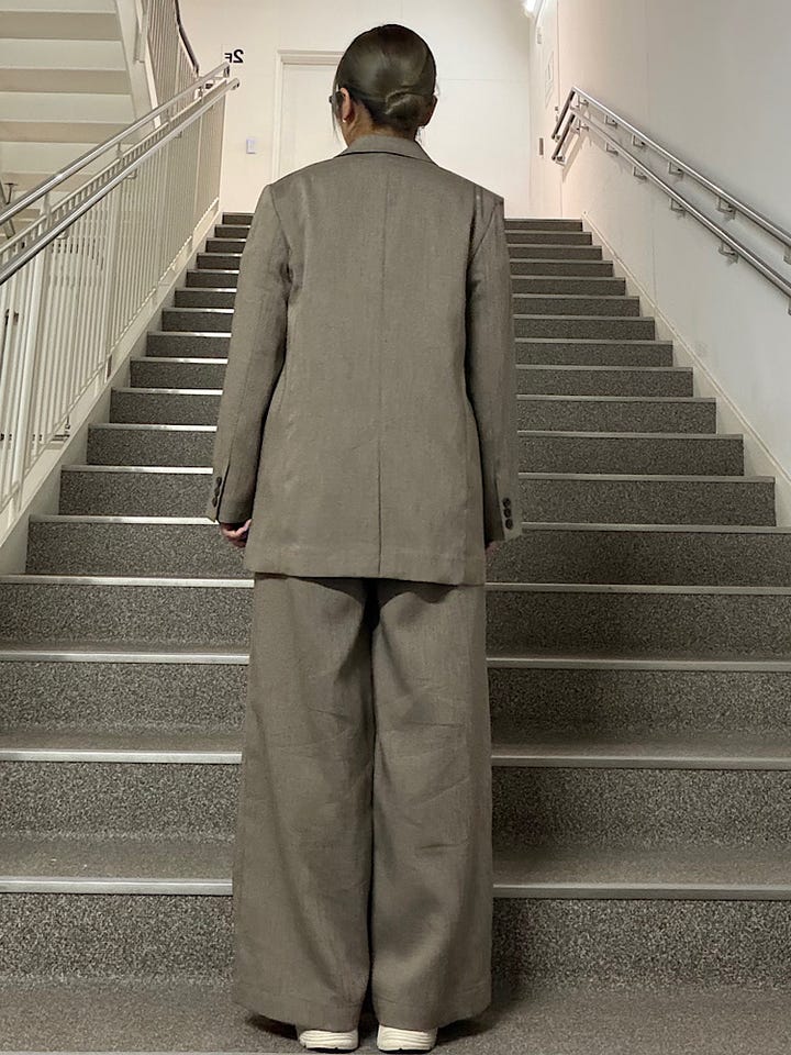 【素材感・着心地】リネンのような表面感のある素材を使用。合成繊維なので取り扱いが楽ちん◎ジャケット特有の堅さがなく、オンオフで幅広く活躍してくれます!