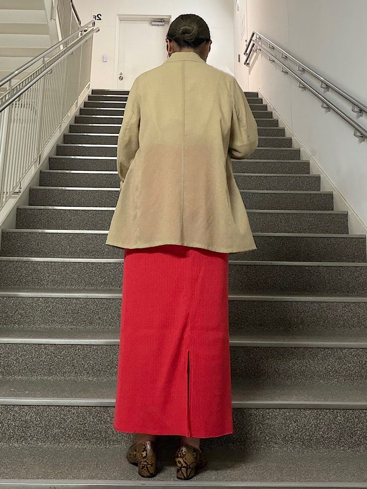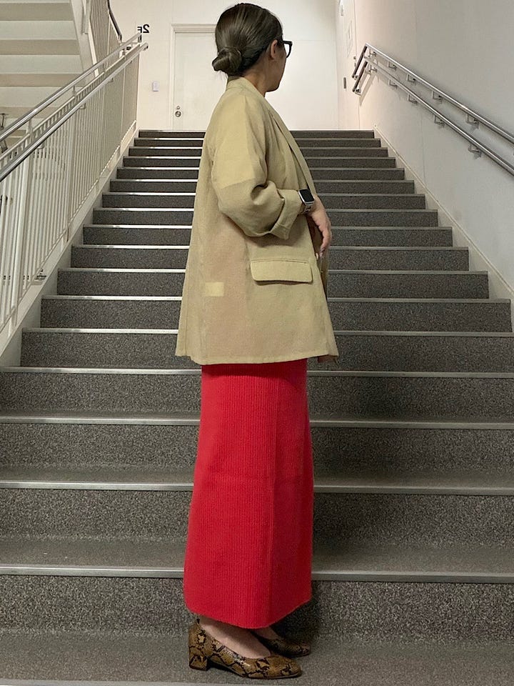 【素材感・着心地】リネンのようなシャリ感のある素材。程よくルーズなシルエットなので普段使いに◎シワになりにくいので、ちょっとした羽織りとして持ち運べます◎