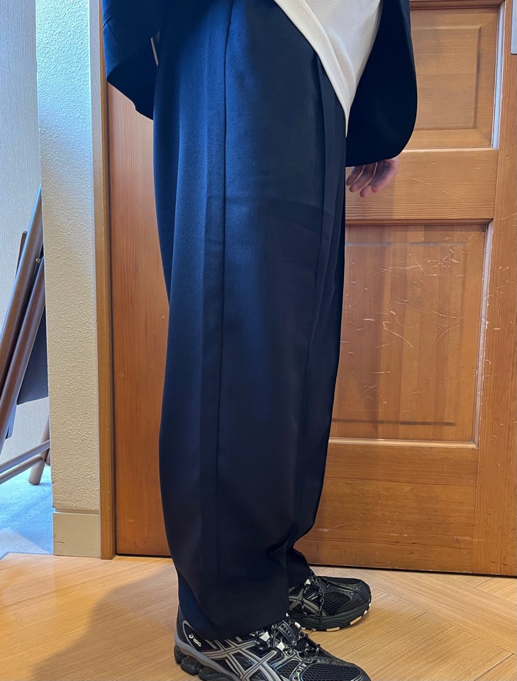 【素材感・着心地】裾が綺麗に落ちるので、裾を溜めて今っぽい雰囲気でも着れます。