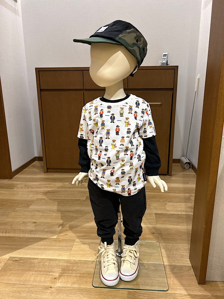 テディベアを総柄にしました。カラフルなので合わせる洋服も選びません。