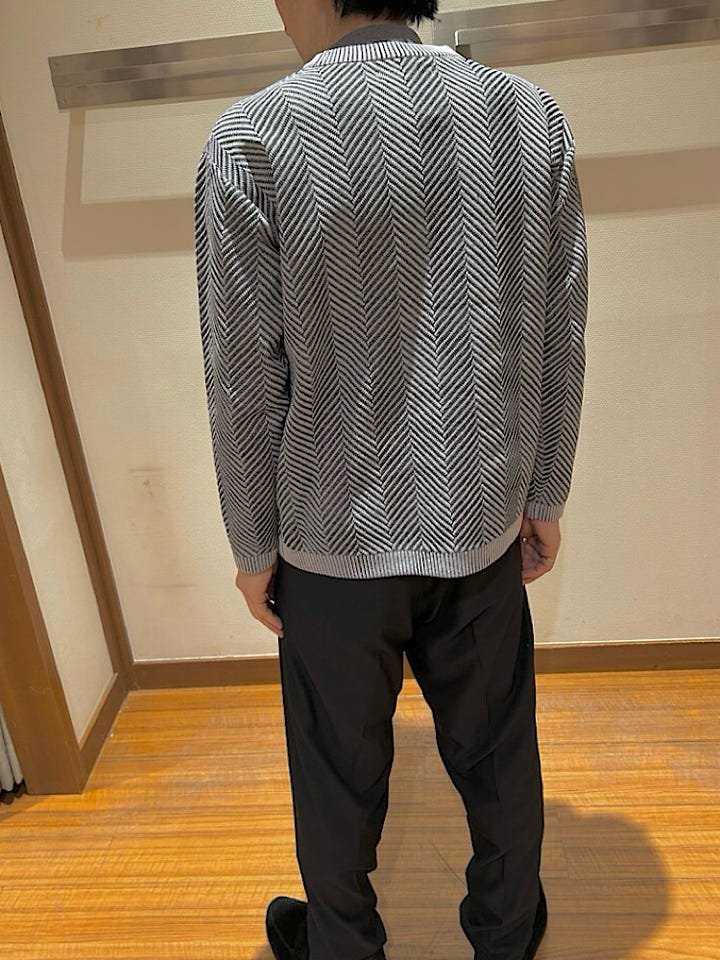 ドライ感のある肌触りで、季節の変わり目にもおすすめです。存在感のあるヘリンボーン柄が、シンプルなスタイリングと好相性。洗濯機可能です。