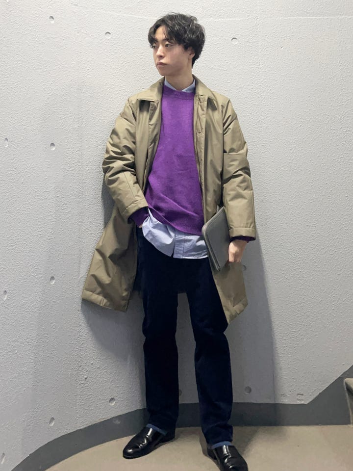 オンオフ兼用で着やすいアウターを使ったスタイリング