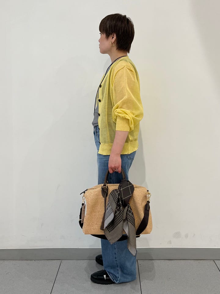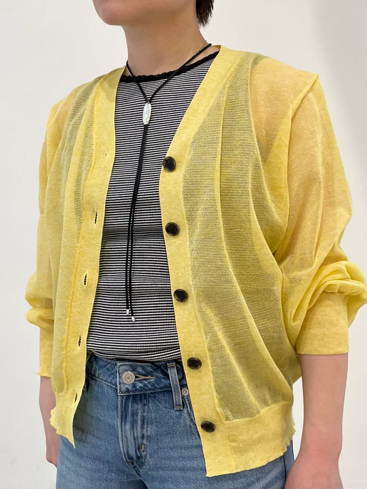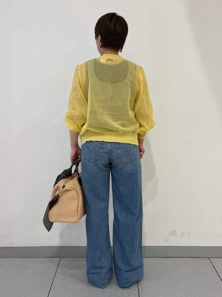 着心地:コンパクトなサイズ感ですが、伸縮性があるので締め付け感なし。トレンドのシアー素材なので、羽織るだけでこなれ感が出ます。