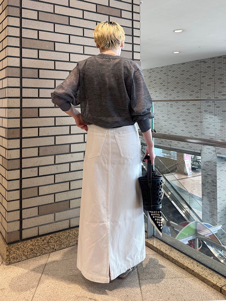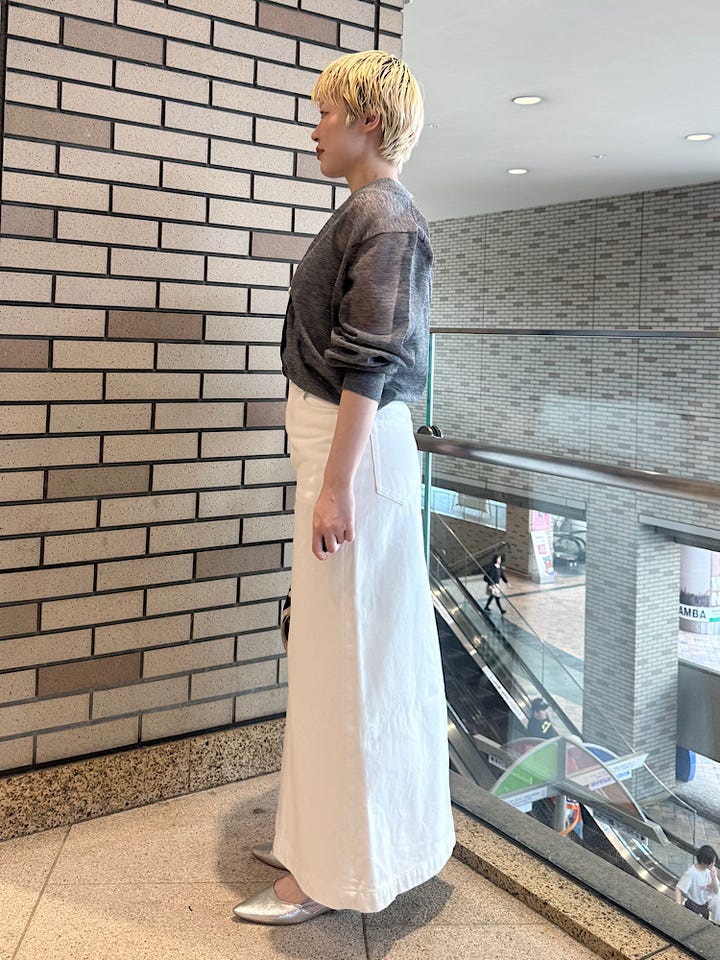 ホワイトデニムなので、ブルーデニムほどカジュアルにならず