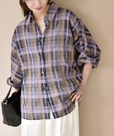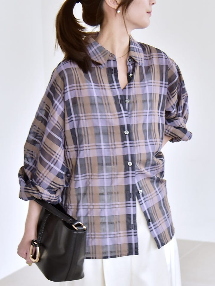 〔ONE SIZE〕quaranciel:〈手洗い可能〉シアー チェック ドルマン ビッグ レギュラー シャツ