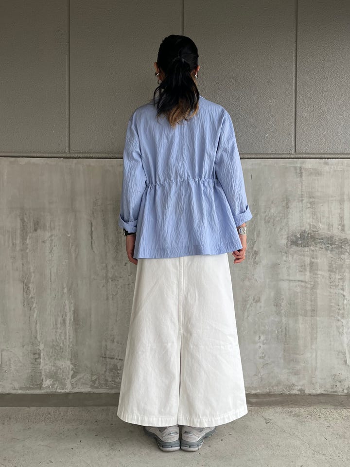 ウエストはタブで調節可能。たっぷりとした丈感なので