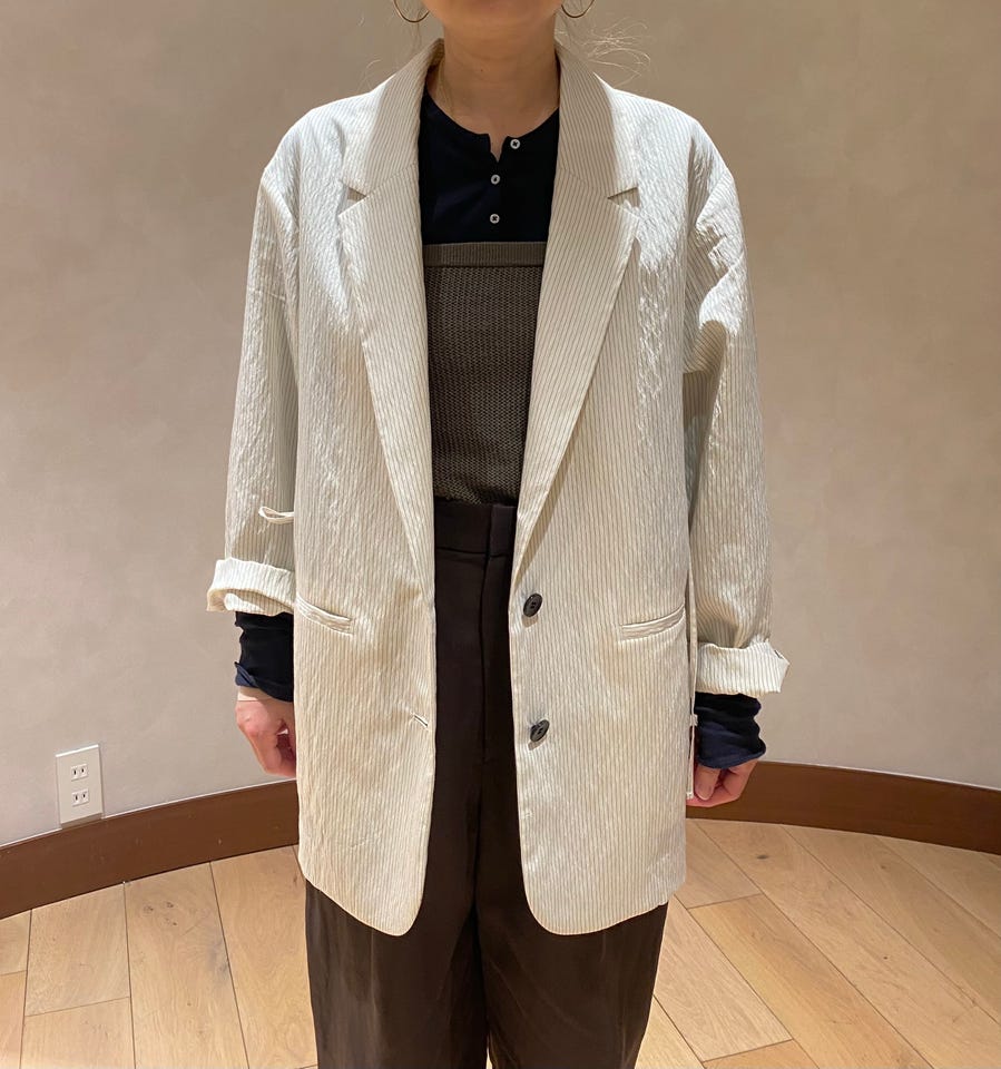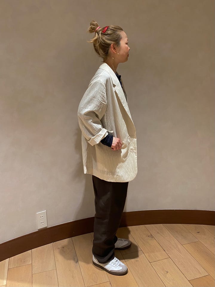 着心地: 麻混の軽いはき心地です。同素材のジャケットもご用意しております。