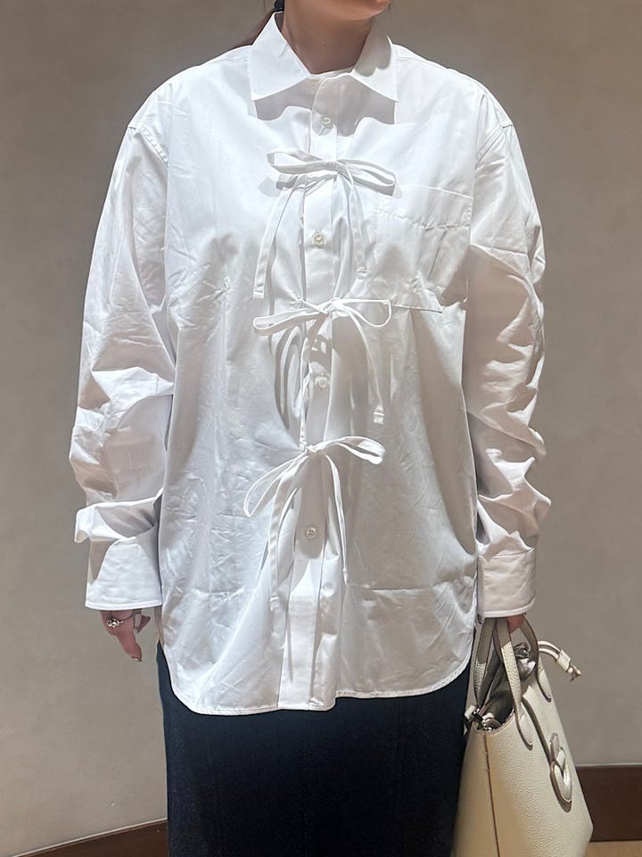 【着心地】サラッとした生地感でフロントのリボンがすごく可愛いです。リボンを解き羽織りとしても着ても◎。