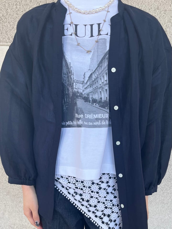 〔ONE SIZE〕《一部追加予約》〈手洗い可能〉IMPERIAL LINEN 混 バンドカラー スキッパー シャツ