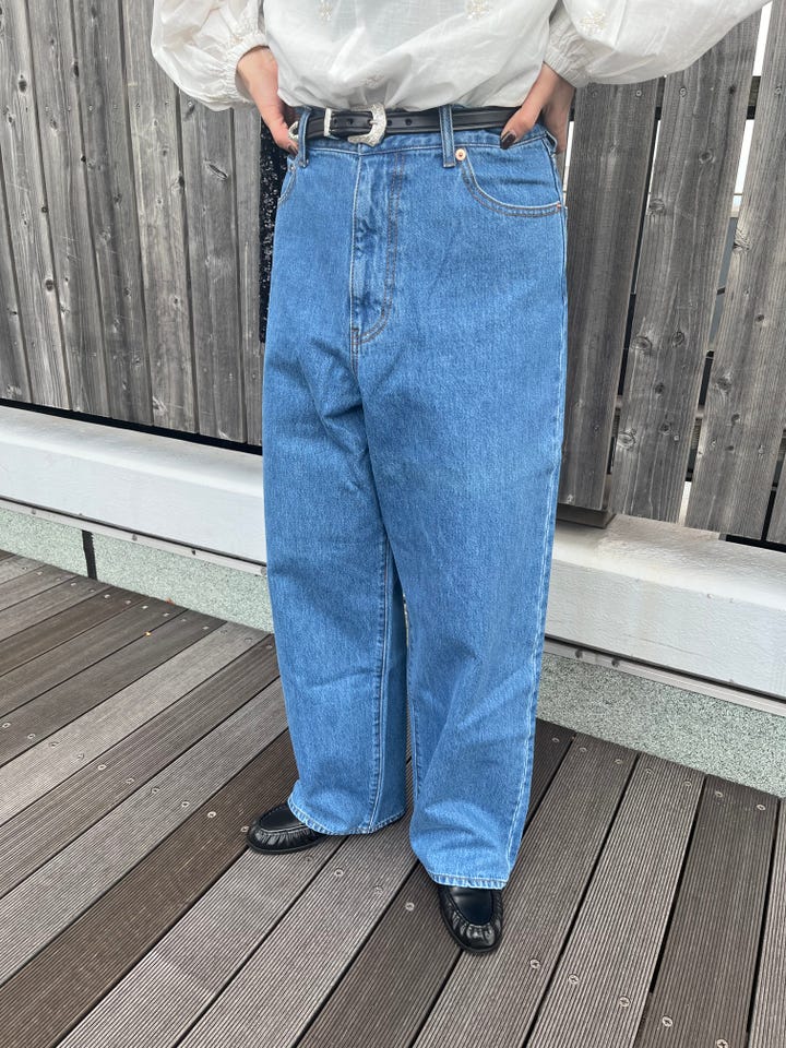 腰、ヒップ周りにゆとりがあるので体型カバーも可能なデニムです。