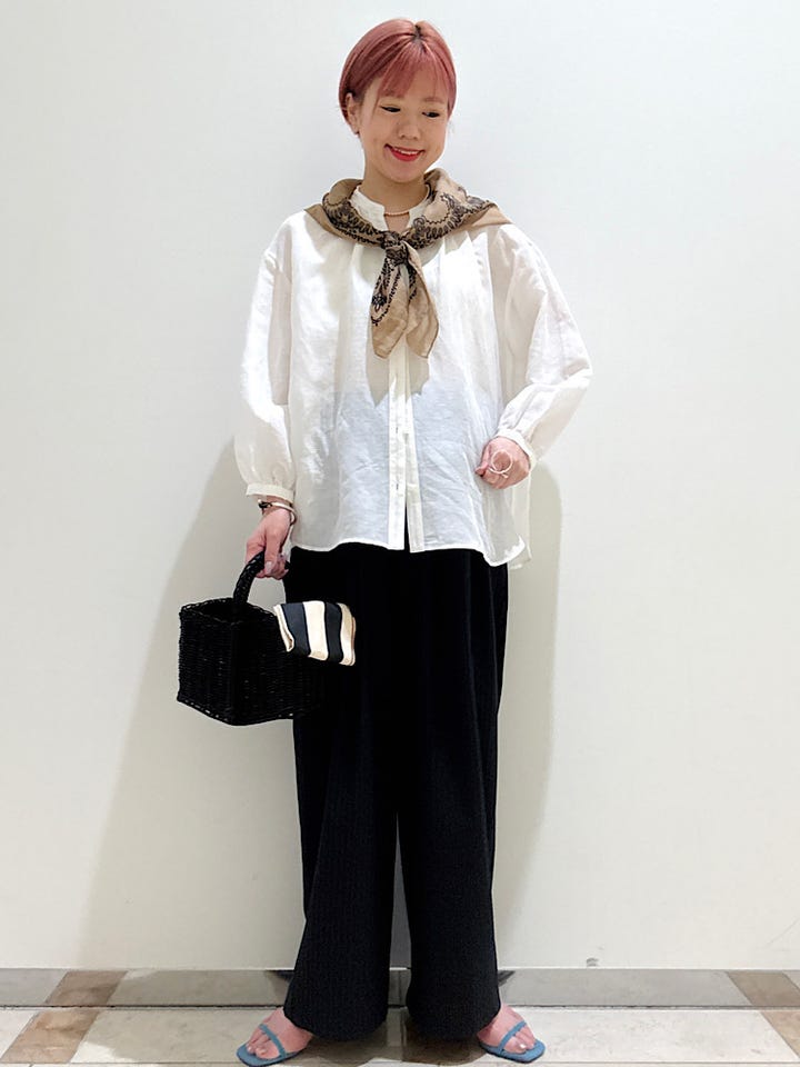 〔ONE SIZE〕《一部追加予約》〈手洗い可能〉IMPERIAL LINEN 混 バンドカラー スキッパー シャツ