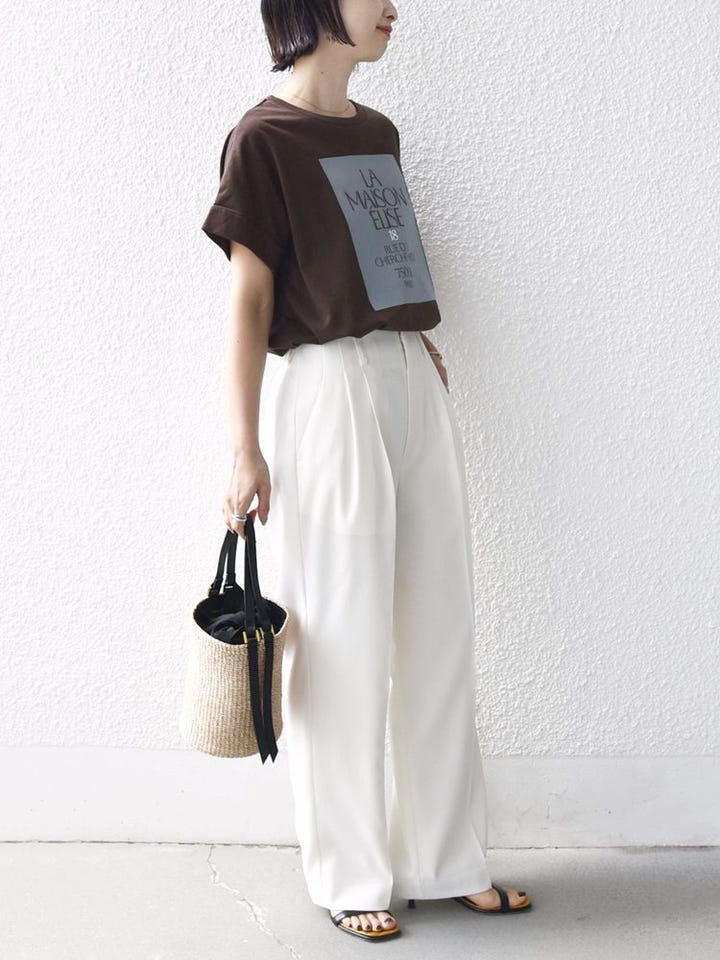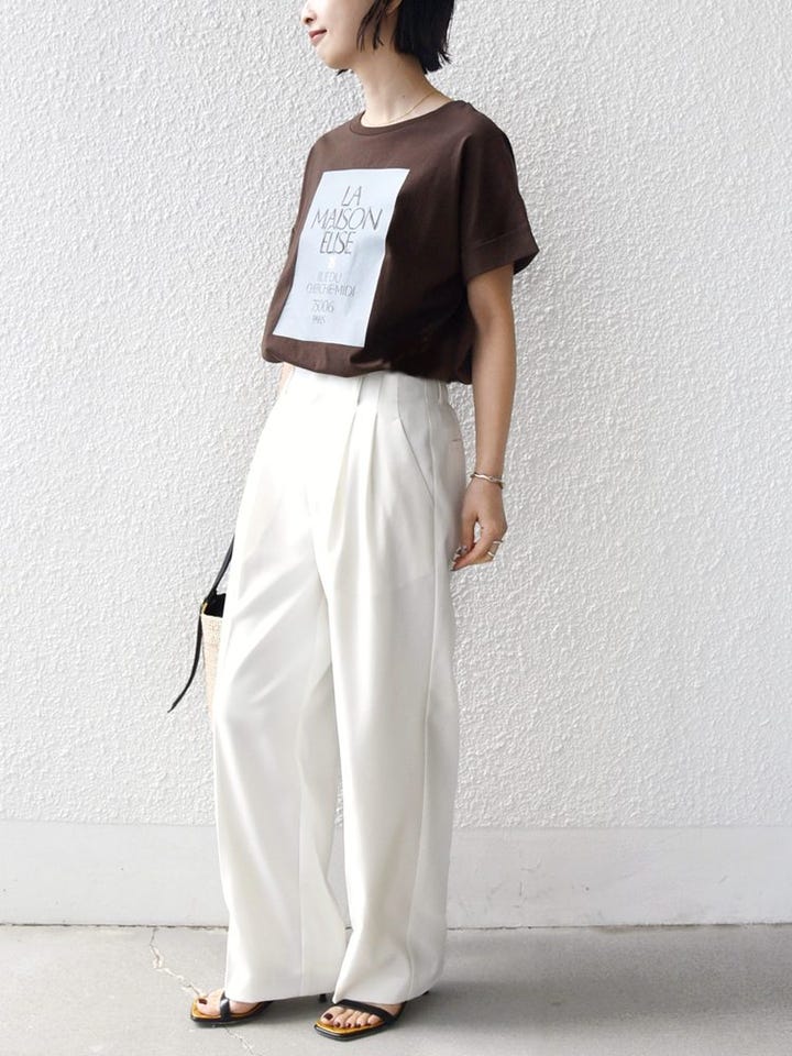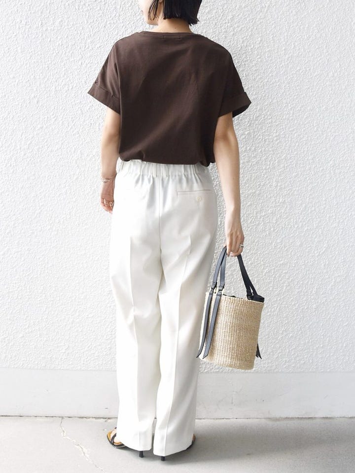 着心地:さらっとしていて肌なじみが良く、これからの汗ばむ季節も快適に過ごせそう。前をインしても、アウトで着てもサマになるシルエットなので、合わせるボトムスを選ばないのも◎