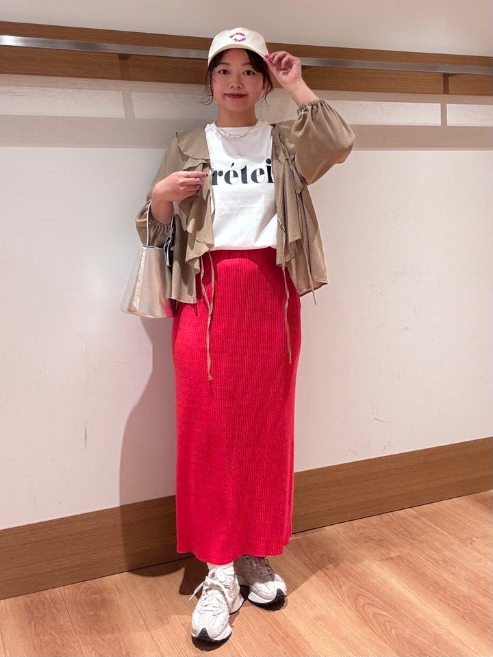 カジュアルなスタイルにピッタリなリブタイトスカート。ウエスト周りがゴムなのでストレスフリーです◎