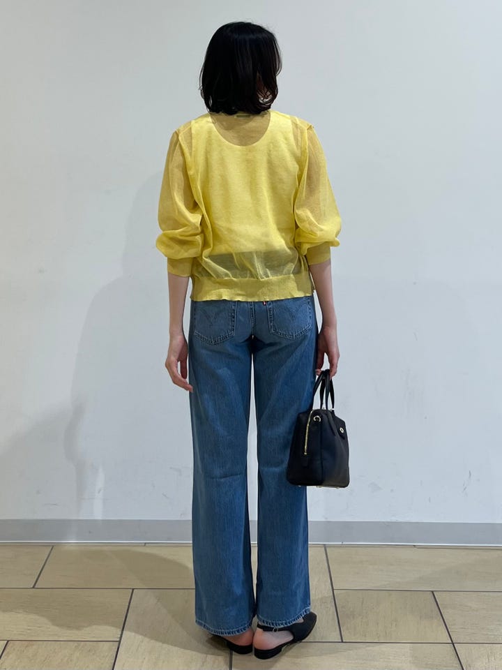 着心地:シアー素材で、身幅はジャストサイズ、袖はゆとりがあります。