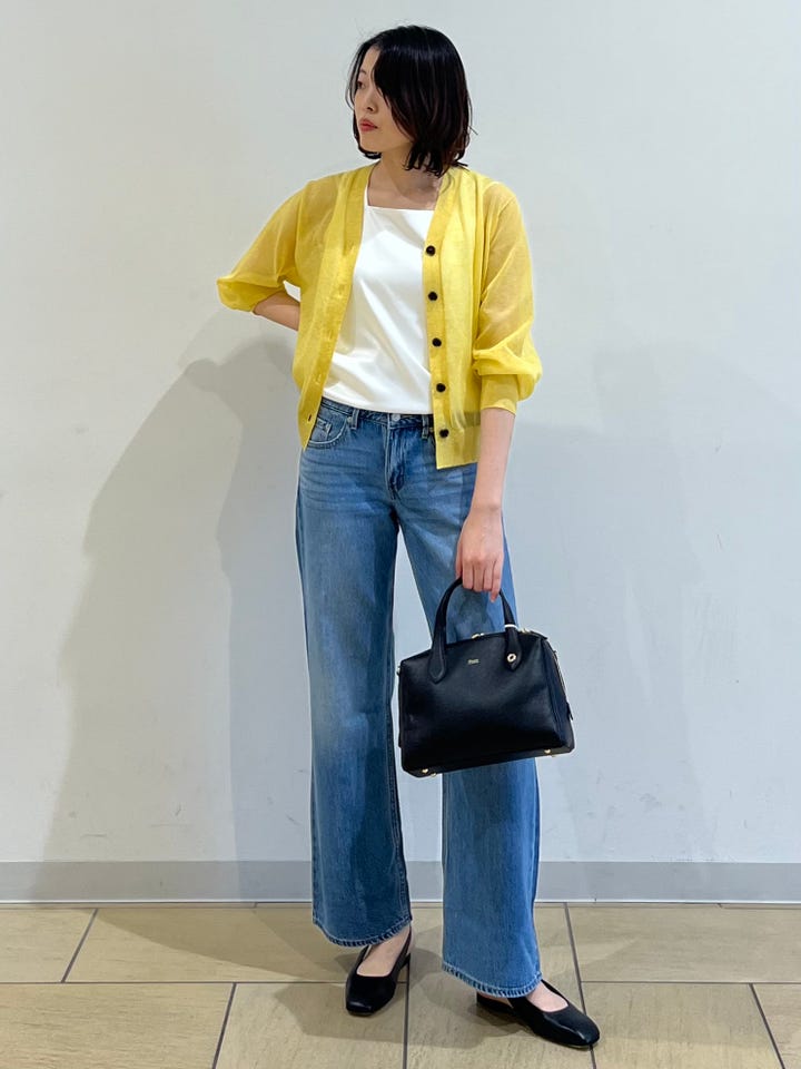 インナーは白のスクエアネックでデコルテをスッキリ見せて、抜け感を作ってみました。