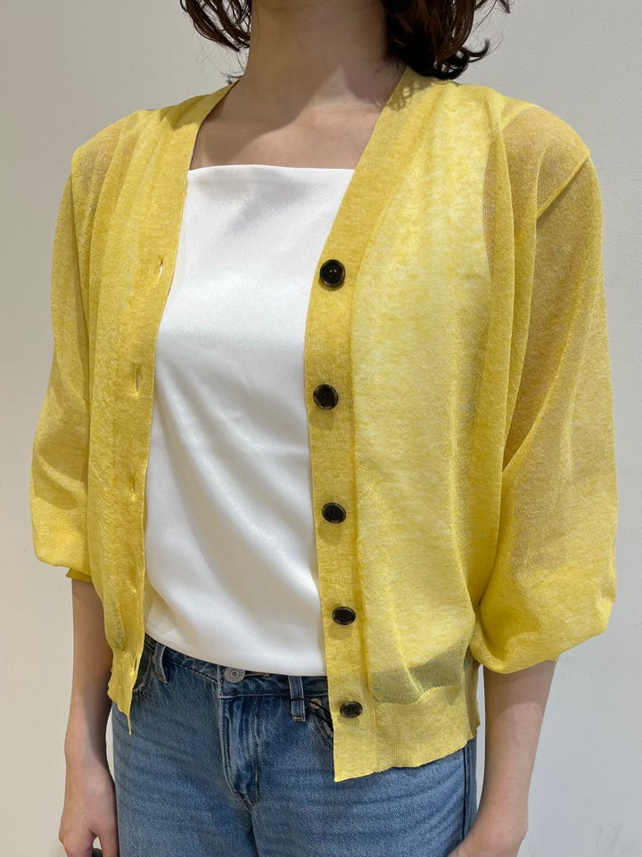 〔ONE SIZE〕《一部追加予約》〈手洗い可能〉麻混 シアー Vネック カーディガン