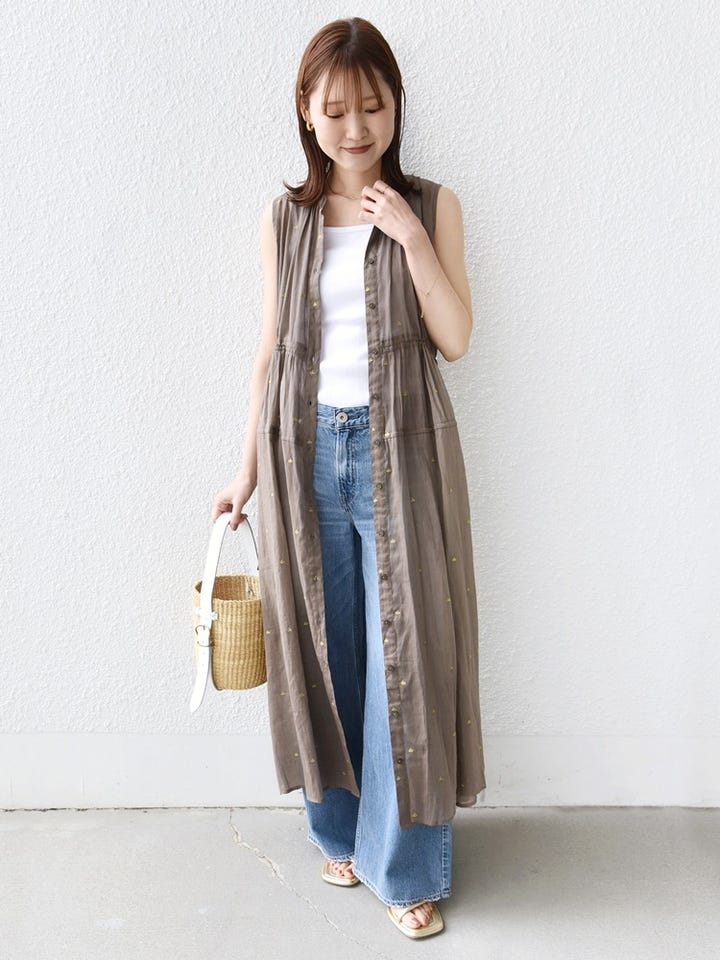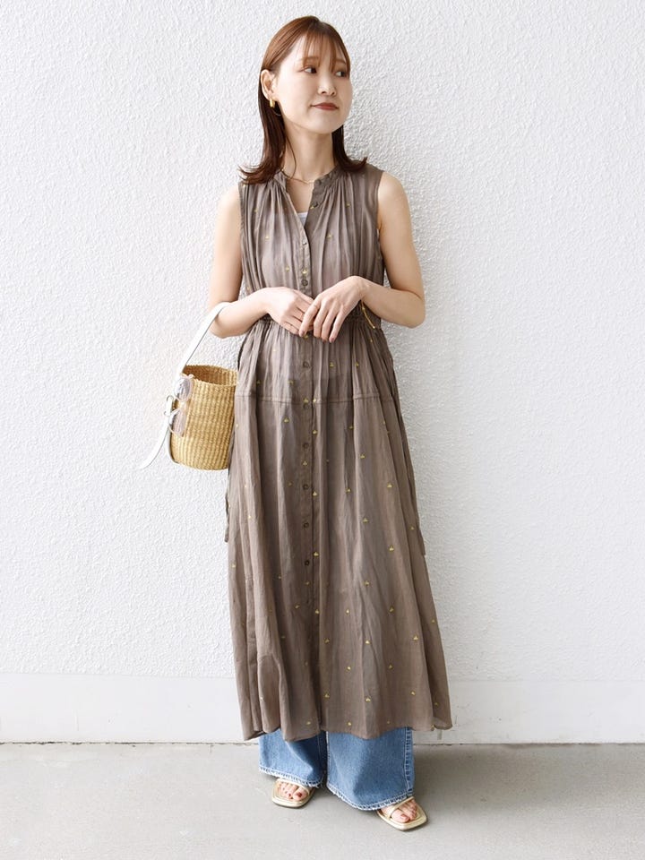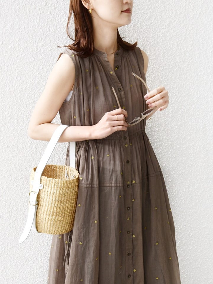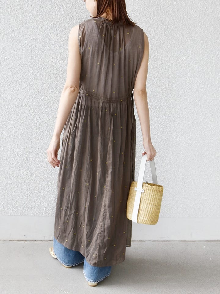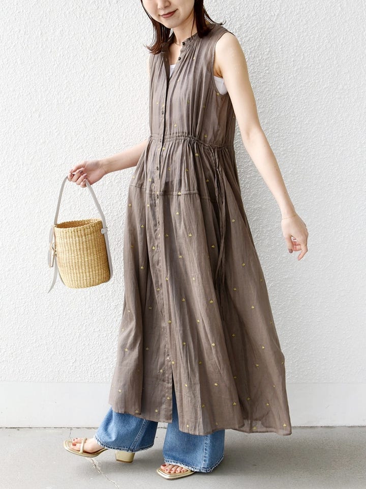 〔ONE SIZE〕《予約》〈手洗い可能〉コットン オーガンジー 刺繍 ウエスト ドロスト ワンピース
