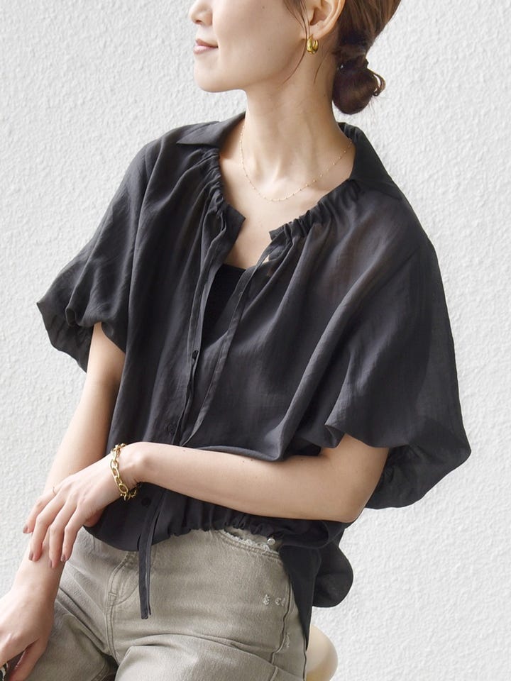 〔ONE SIZE〕《予約》【WEB限定】〈手洗い可能〉バルーン スリーブ 裾 ドロスト ブラウス