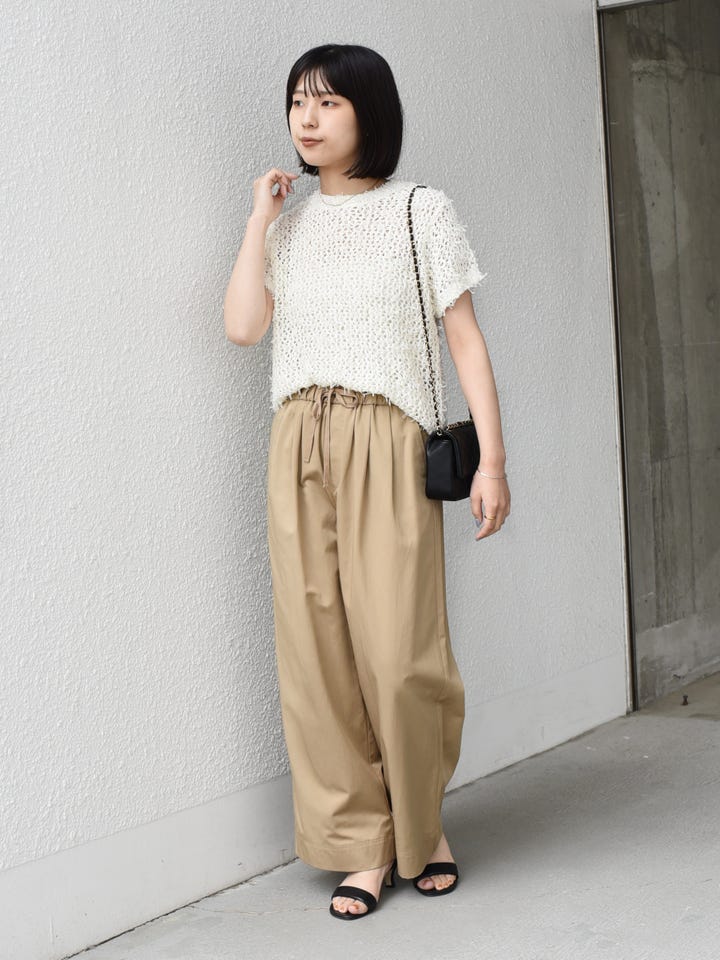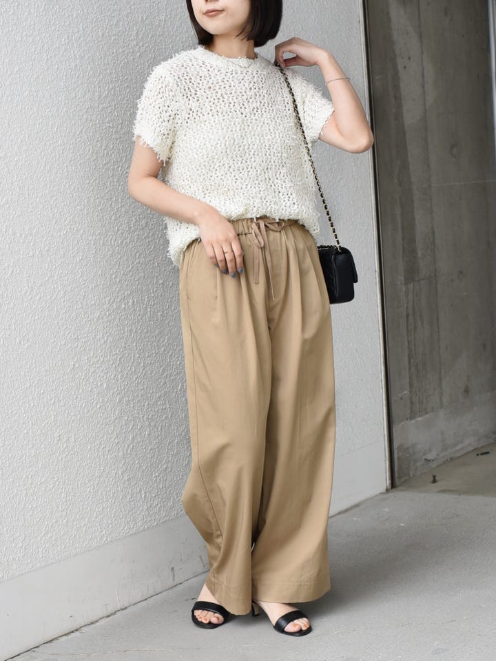着用レビュー:薄手で涼しい着用感です。楽な履き心地なのにきちんと見えも叶うので万能に着回していただけます◎