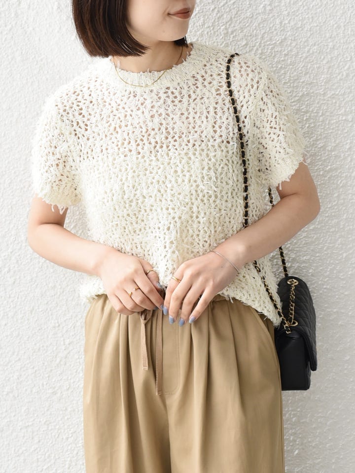 着用アイテム:〈手洗い可能〉チュールヤーン ミックス ショートスリーブ ニット