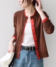 着用アイテム:配色 ニット クルーネック カーディガン