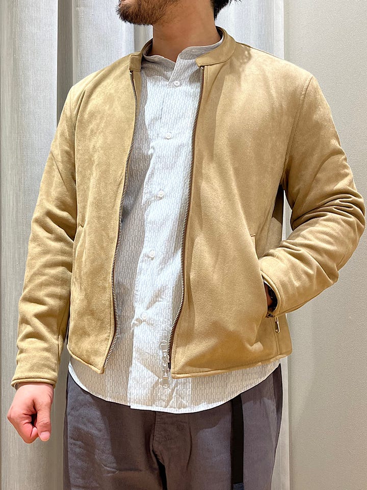 着心地:初めての着用からよく馴染み手入れも楽なのでラフに羽織っていただけます。