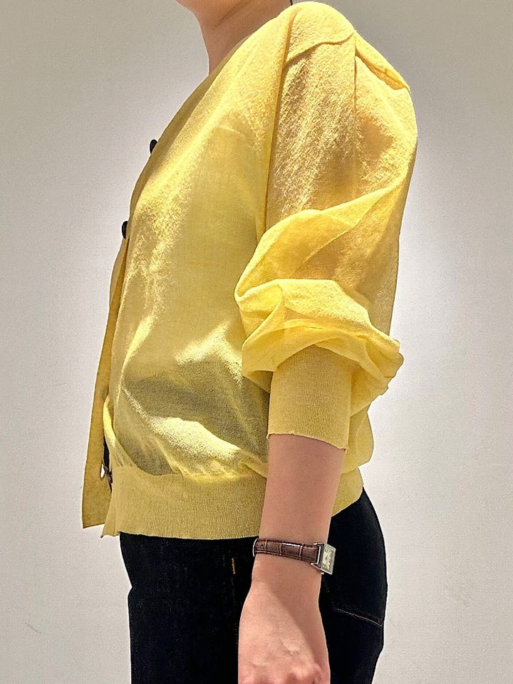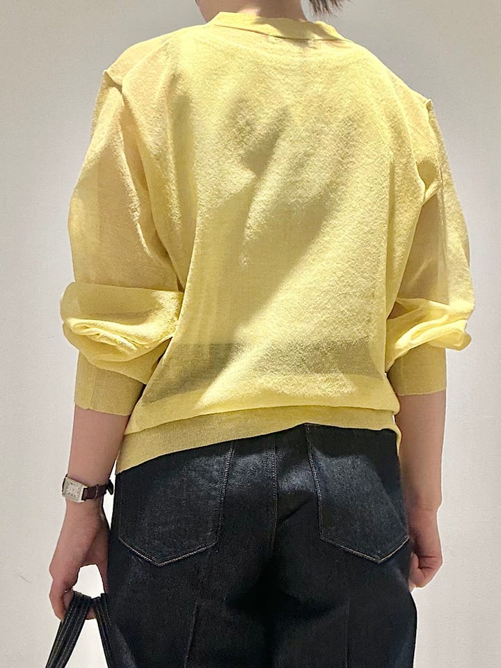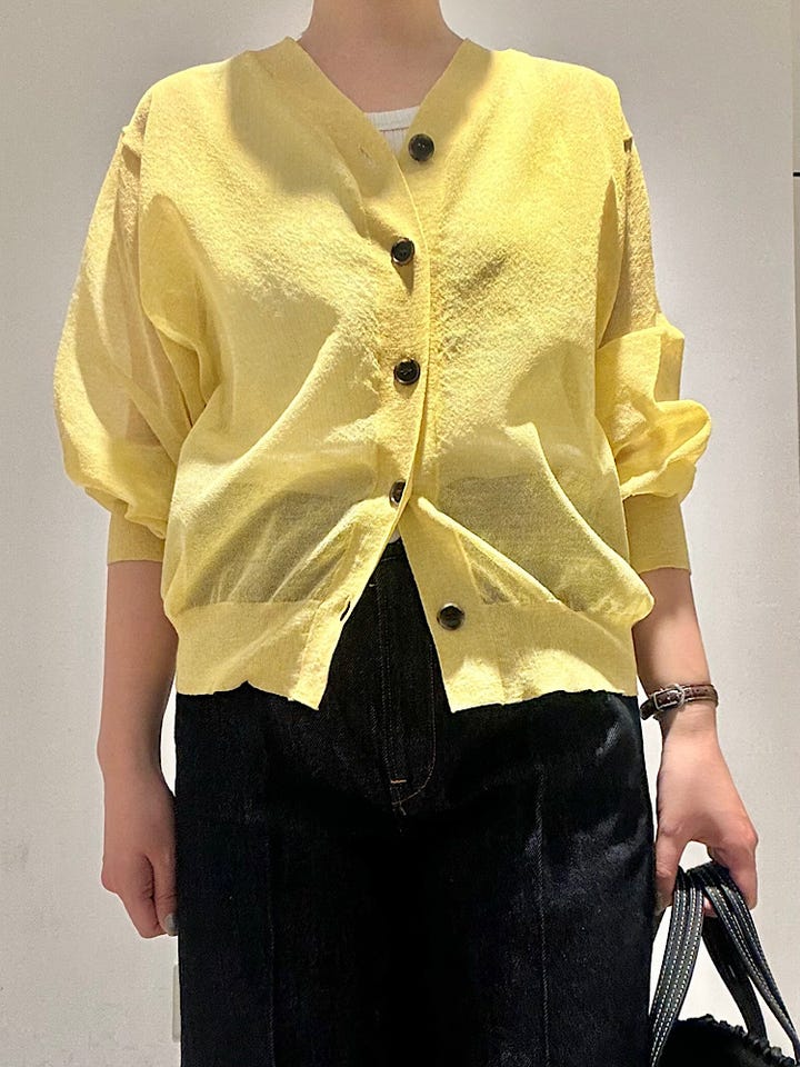 〔ONE SIZE〕《一部追加予約》〈手洗い可能〉麻混 シアー Vネック カーディガン
