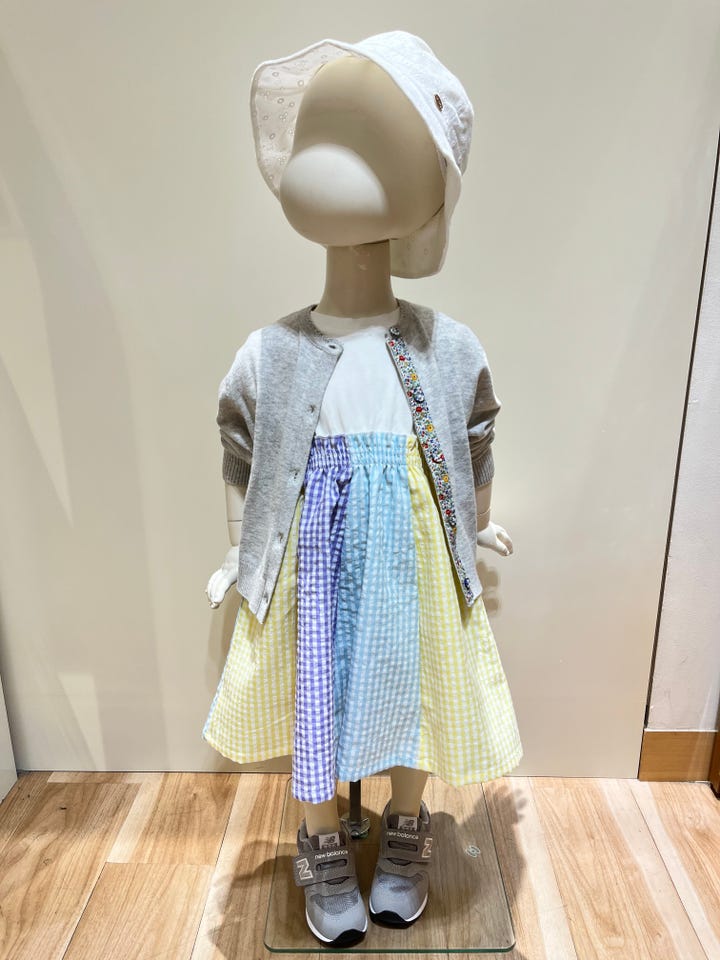 切り替え部分からフワッと広がって、女の子らしいシルエットがとても人気のワンピースです。綿のペチコート付きで透け感も気にならず、これからの季節に活躍するアイテムです◎