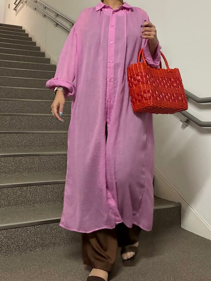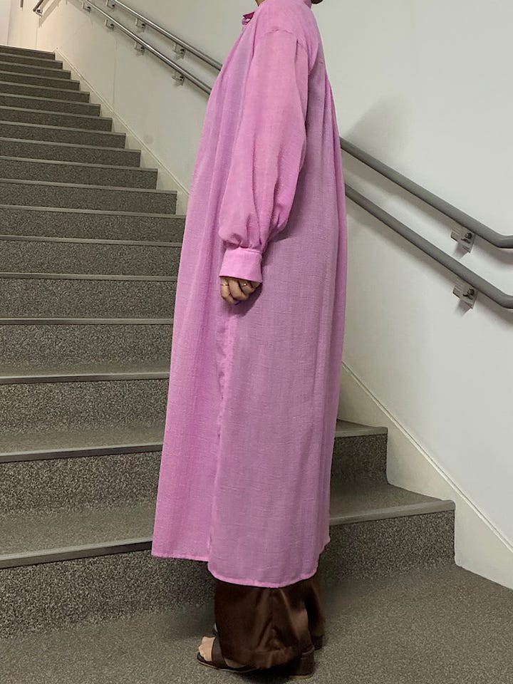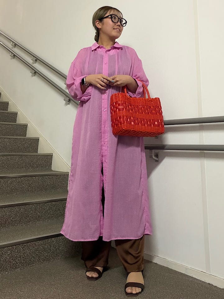 【素材感・着心地】薄手でやや透け感のあるボイル生地を使用。ワンピースとしてはもちろん、羽織りとしても活躍してくれます♪パンツとのレイヤードスタイルも◎