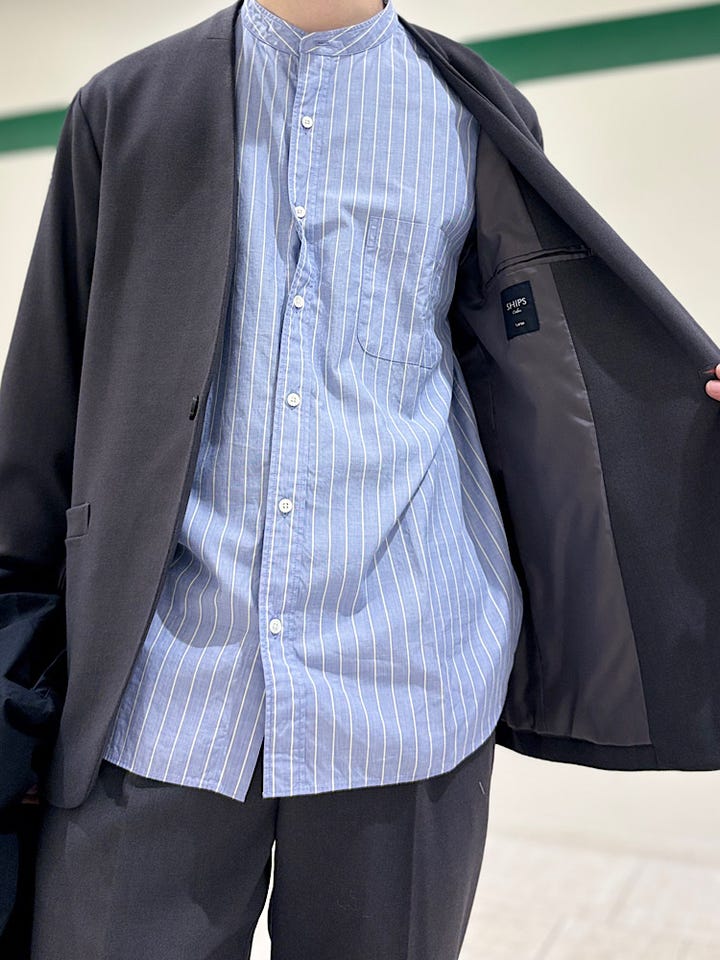〔LARGE〕SHIPS Colors:〈手洗い可能〉TR ノーカラー ジャケット(セットアップ可能)◇
