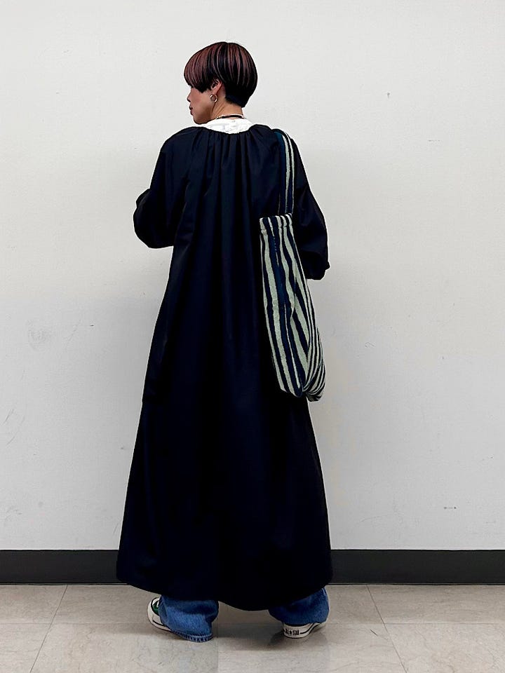 〔38〕SHIPS Primary Navy Label:〈手洗い可能〉撥水 羽織 ギャザー ワンピース