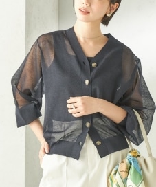 〔ONE SIZE〕《一部追加予約》〈手洗い可能〉麻混 シアー Vネック カーディガン